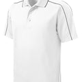 Piping on the shoulders and back give this moisture-wicking, snag-resistant polo sporty contrast. |